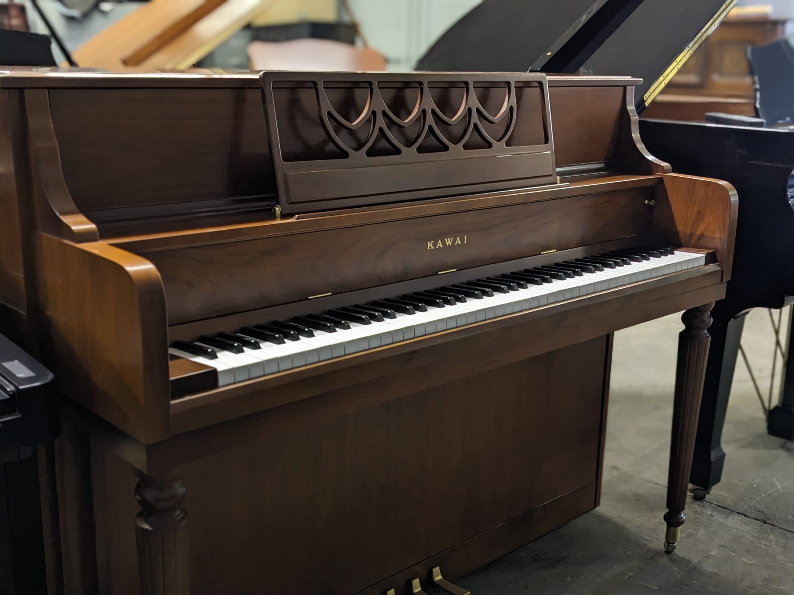 This Kawai 701T Console is an elegant classic model designed to fit in most any home and would be a great piano for both the beginner or advanced player.  They are affordable to purchase, easy to maintain and blends in quite nicely with a home’s decor.   Having a serviced, real piano action to play on in the beginning of a pianists career teaches him/her how to play correctly and without forming “bad habits” in their technique. This piano will cost less than any quality, entry level keyboard, and will not lose value like a keyboard will. As long as a piano is kept serviced it’ll hold it’s value for years to come.