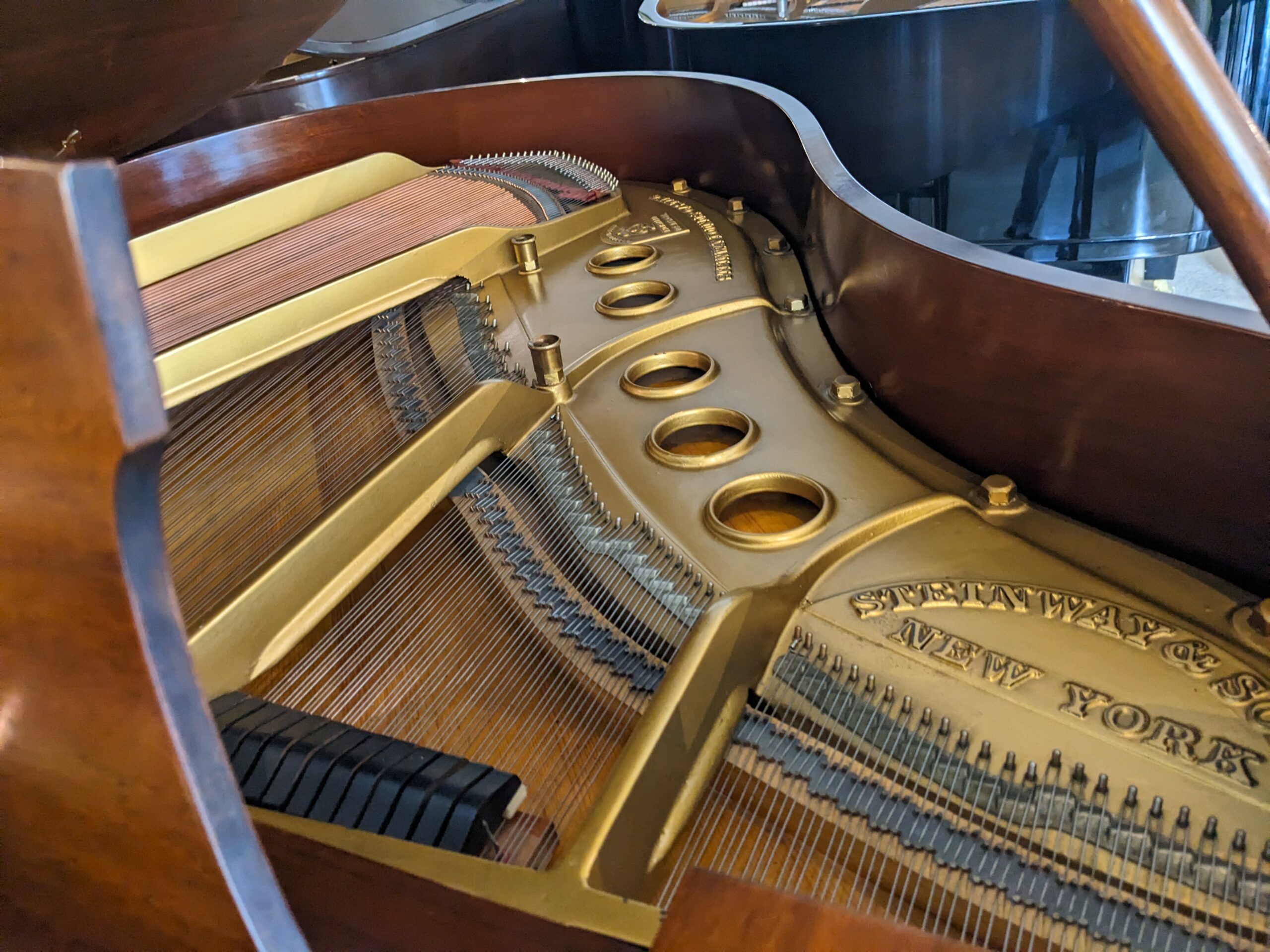 A Steinway Model S built in Steinway & Sons’ New York factory.  This beautiful vintage piano built in the 1930’s was a real pleasure to find.  Mostly original parts all around, it’s a fabulous piano with a Steinway classic warm tone.  It’s a great piece whether you’re a player, collector, or just want something stunning in your home.  Shows its age in all the right ways—lots of character, solid craftsmanship, and still sounds great.   It’s small size belies the voluminous full sound that comes from it when played.  Offered at a small fraction of the cost of a new model S, this piano sports vintage woods externally and internally. It is sure to make someone a very happy owner.